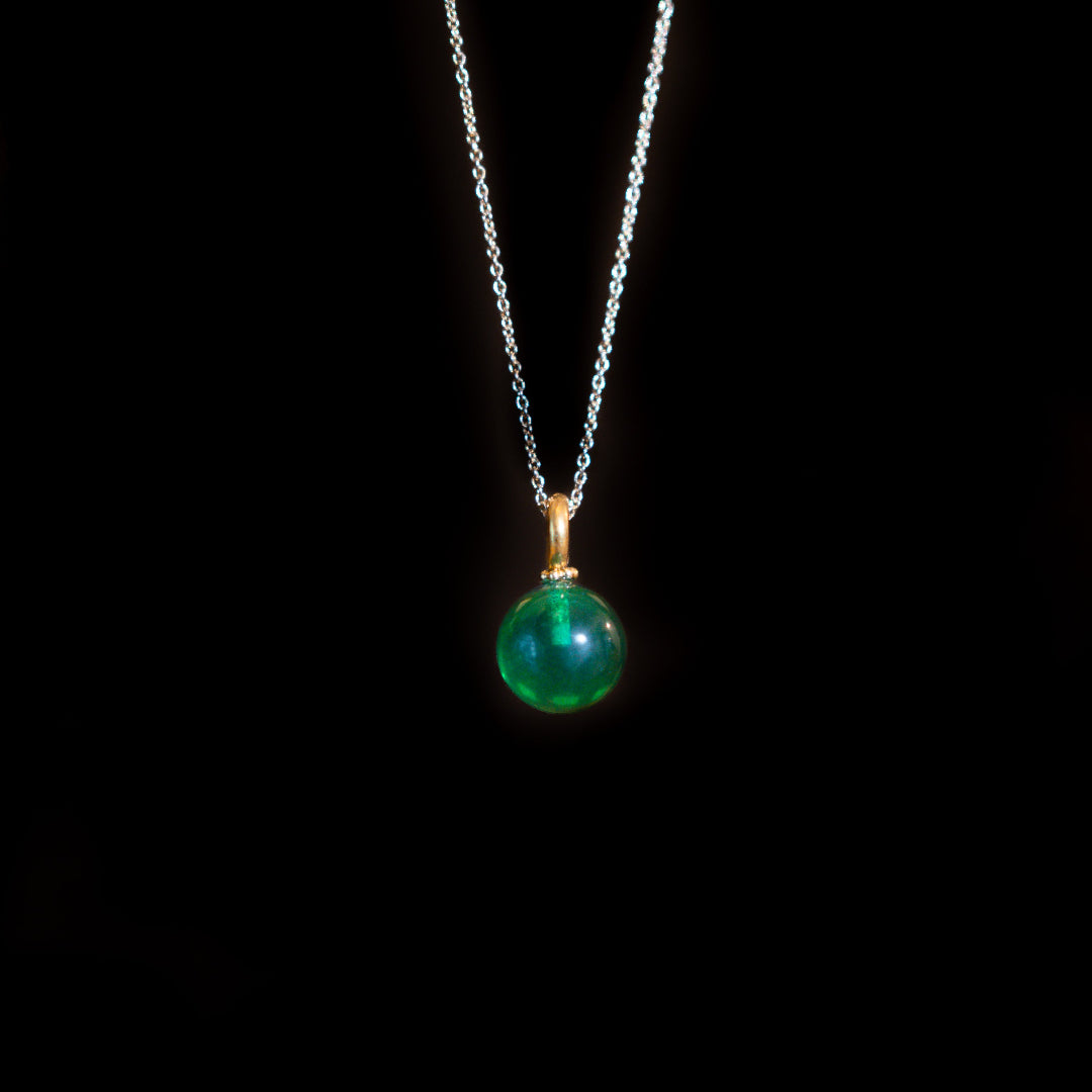 Bernstein, grün, Kugel, glatt