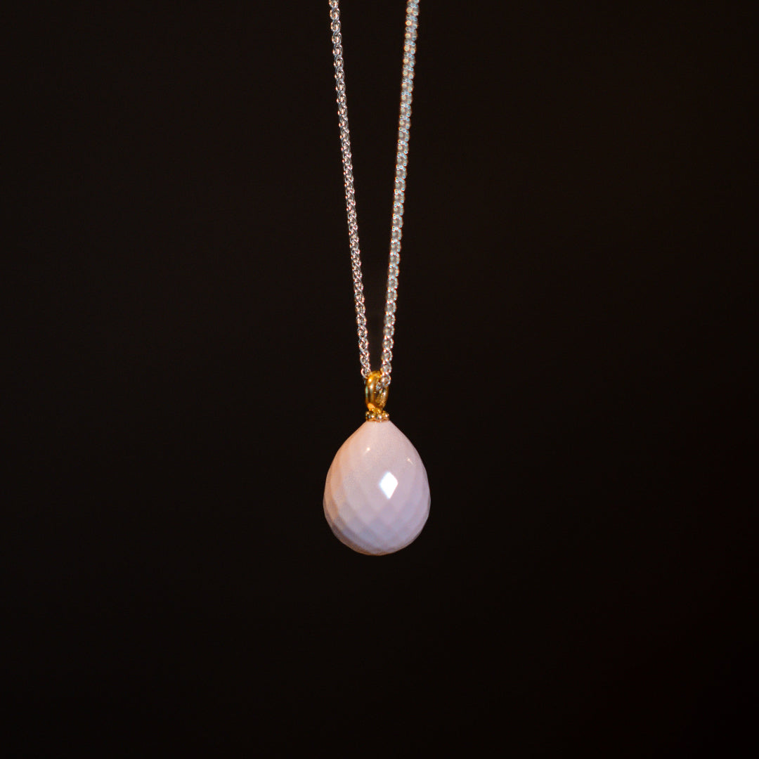 Koralle, Tropfen facettiert, 13mm x 17mm, Sterlingsilber plattiert, Kette: Fuchsschwanzmuster, 42cm , 1,3mm stark,